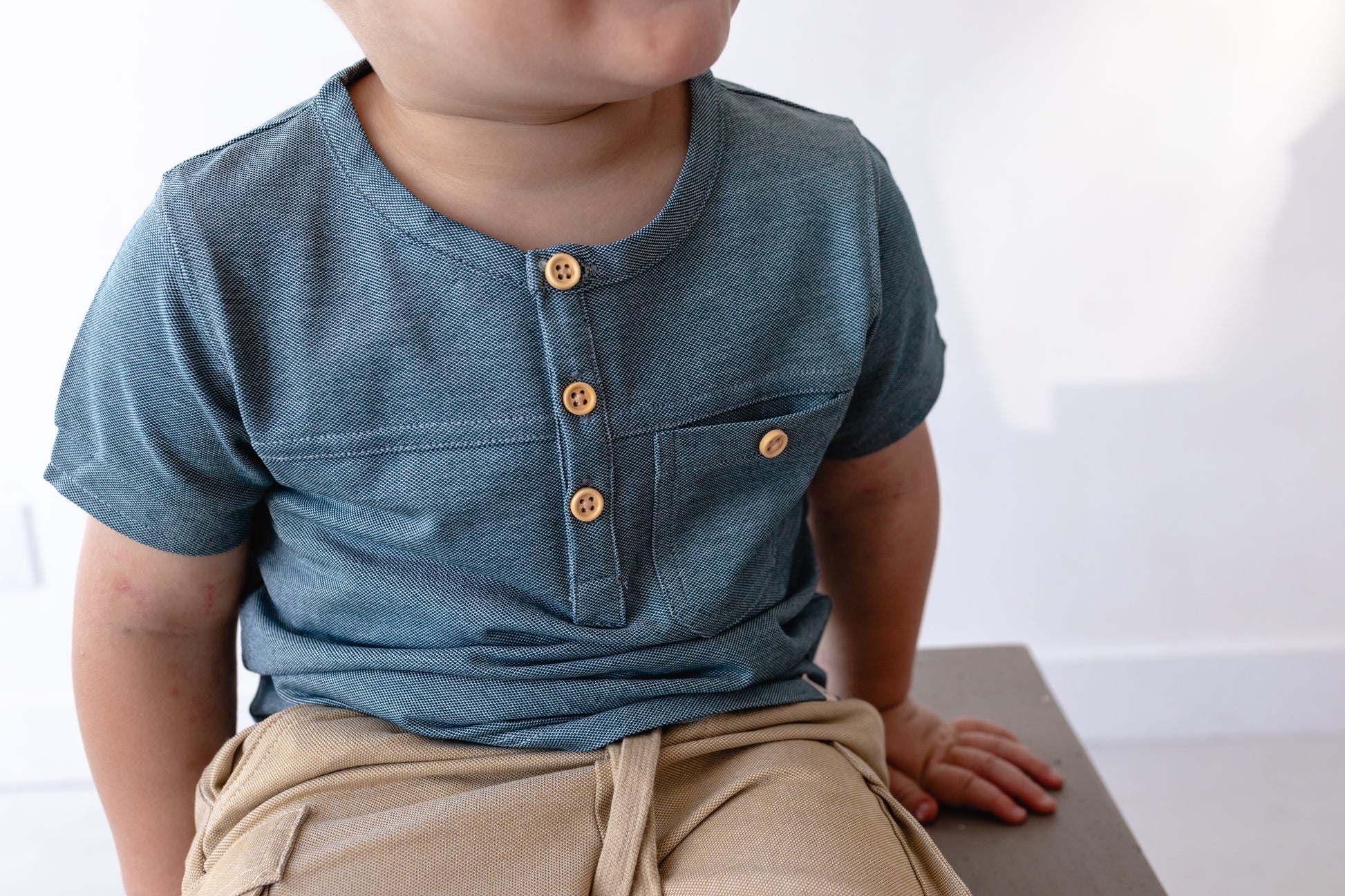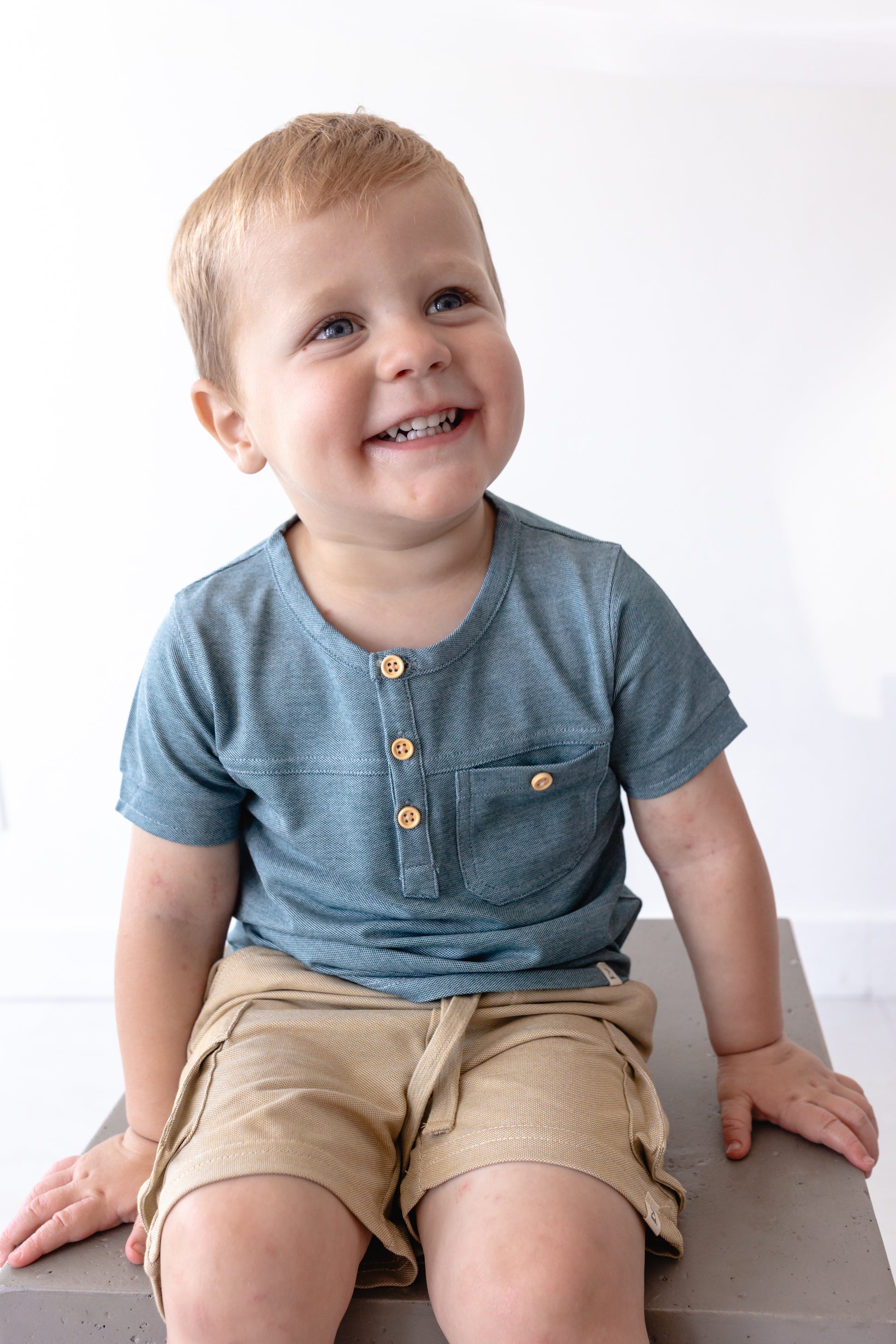 Cool, classic, and ready to play! Our Boardwalk Tee from Me & Henry keeps him comfy with breathable fabric and stylish with wooden buttons.
